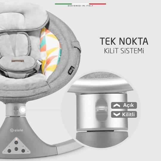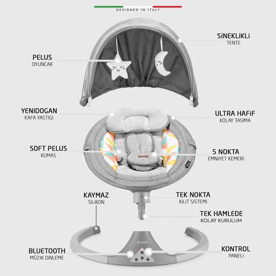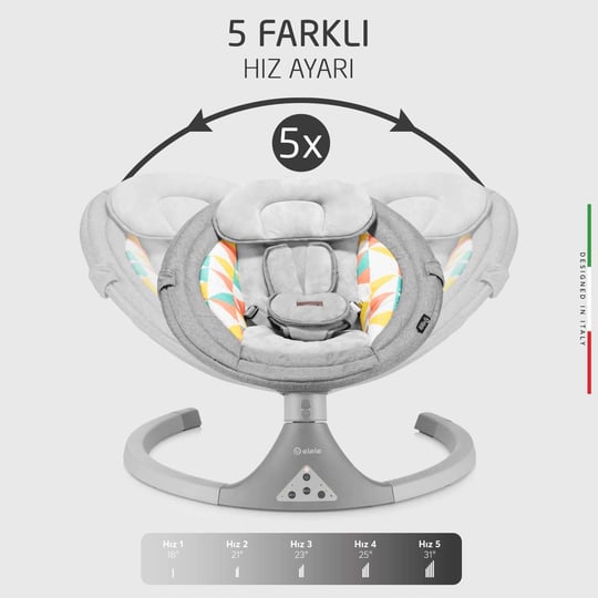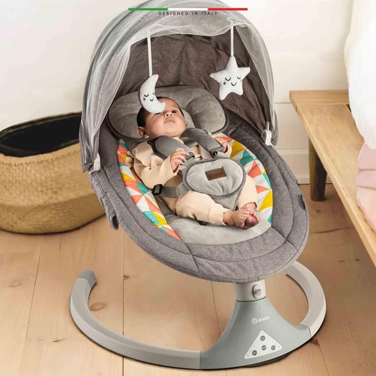 ین گهواره یک محصول عالی و با کیفیت است که کاملا بی صدا تکان خورده و سرعت آن در 5 حالت تنظیم میشود.این محصول یک صفحه ی موزیکال آرامبخش دارد، همچنین میتوانید تلفن همراه خود را از طریق بلوتوث به آن متصل کرده و نمایش های رادیویی یا موسیقی مورد علاقه ی خود و نوزاد را پخش کنید.این گهواره دارای یک سایه بان متحرک با پشه بند است که از کودک شما در برابر آفتاب، گرد و غبار و مگس های مزاحم، محافظت میکند.