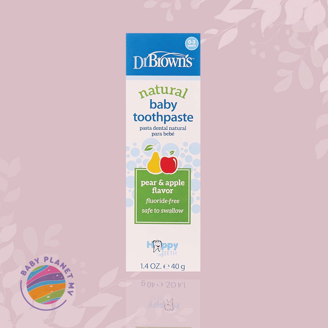 بدون فلوراید مناسب برای والدینی که گزینه های بدون فلوراید را برای تمیز کردن دندان ها و لثه های کودک خود ترجیح می دهند. حاوی زایلیتول که به جلوگیری از پوسیدگی و بازسازی مجدد دندان ها کمک می کند در صورت بلعیده شدن با مواد کاملا طبیعی و بدون طعم دهنده یا رنگ یا مواد نگهدارنده، بی خطر است. مناسب برای کودکان از بدو تولد تا ۳ سال طعم تازه گلابی و سیب