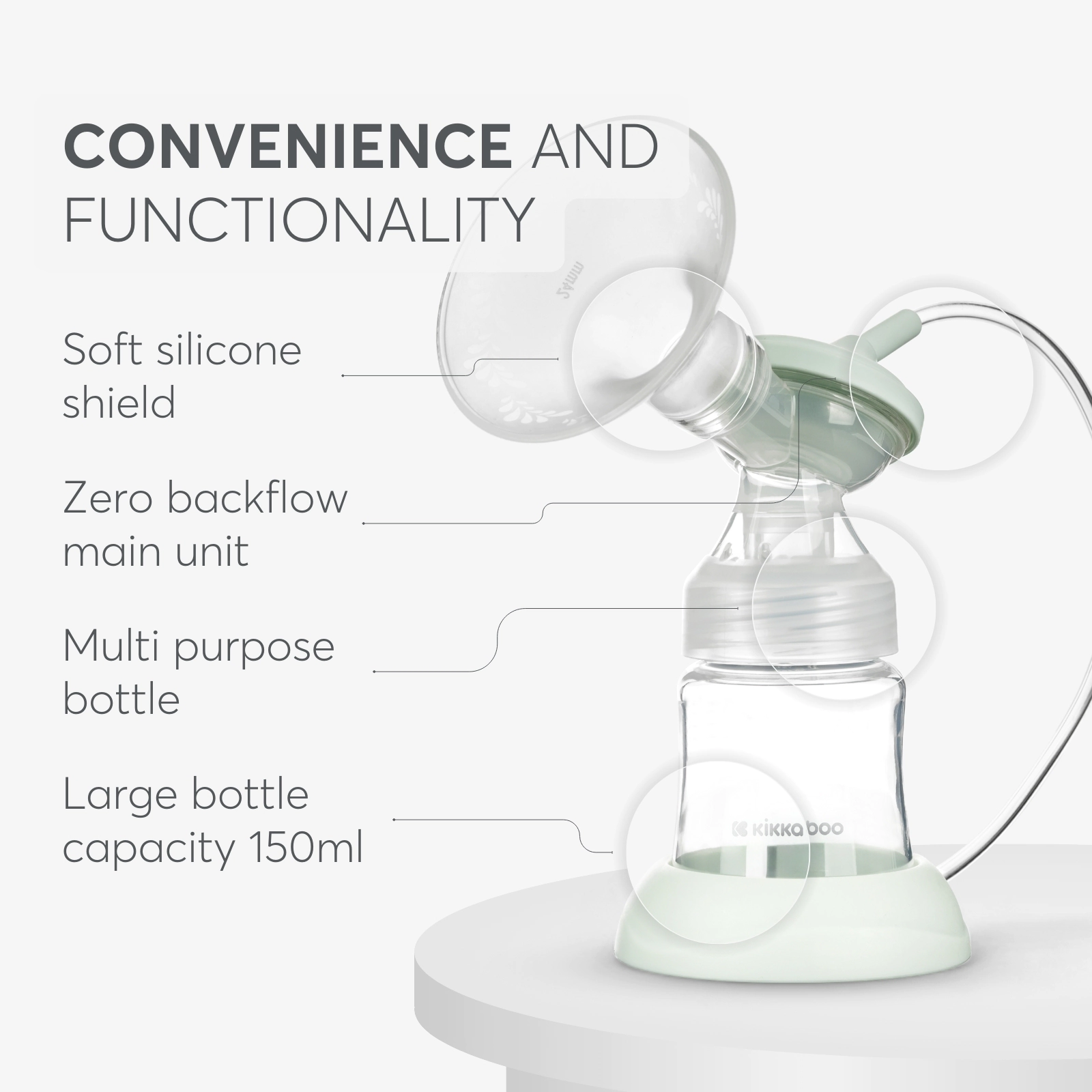 شیردوش برقی کیکابو مدل Caily با طراحی کاربردی و نوین، استخراج شیر را برای مادران بسیار آسان کرده است. این محصول در حالت ماساژ، تحریک پذیری سینه را بیشتر کرده و به خروج شیر بیشتر از سینه کمک میکند. شیردوش Caily در حالت پمپاژ، در 9 سطح قابل تنظیم است که با توجه به نیاز، تنها با لمس قسمت مشخص شده، میتوانید آن را در هر سطح تنظیم کنید. حالت سوم این محصول، بایونیک است که دوشیدن شیر را با توجه به شبیه سازی مکش دهان نوزاد تنظیم میکند.این محصول کاملا فاقد BPA بوده و در صورت وارونه شدن شیردوش، شیر به قسمت بالایی دستگاه نمیرسد. شما میتوانید در قسمت Memory Faction، یکبار تنظیمات مورد نظرتان را ثبت کنید و از تنظیم کردن هرباره ی شیردوش، راحت شوید.جنس سری شیردوش از سیلیکون مرغوب بوده و از حساسیت و زخم شدن سینه ی مادر جلوگیری میکند.