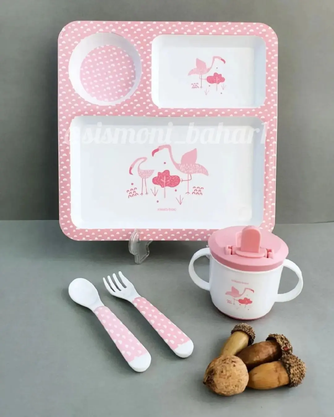 ست ظرف چهار تکه کيکابو Kikkabooاین محصول دارای 4 تکه ظرف مختلف شامل یک عدد بشقاب اردوخوری یک عدد لیوان و یک ست قاشق چنگال است.بشقاب دارای 3 بخش است که یک جا برای قرار دادن لیوان و دو جا برای دو نوع خوراکی دارد.لیوان این ست درب دار و دارای دسته های راحت برای به دست گرفتن کودک است.این ست تهیه شده از مواد با کیفیت ملامین و فاقد هرگونه ماده ی مضر مانند بیسفنول 1 BPA است.قابل استفاده برای نوزادان بالای 4 ماه است.برای اولین استفاده حتما ابتدا ظرف را با آب گرم و مایع ضد عفونی کننده تمیز کنید.از شستن این ظروف با مواد سفید کننده ی قوی مانند وایتکس خودداری کنید.قابل شستشو به صورت دستی یا در ماشین ظرفشویی است.محصول کشور اسپانیا و بلغارستان تحت لیسانس چین تولید میشود