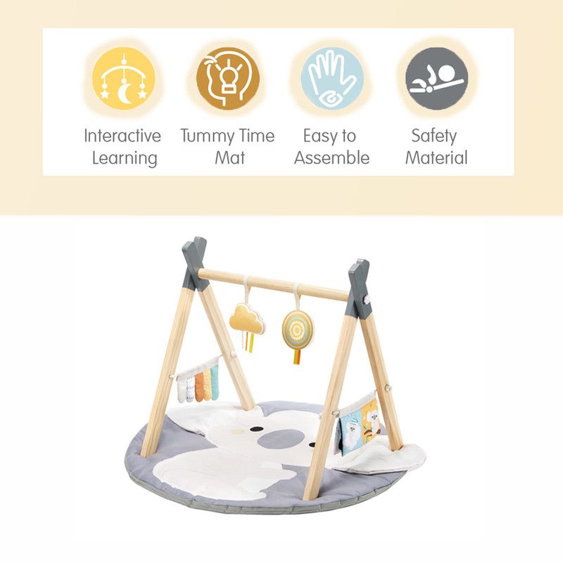 تشک بازی Konig Kids یک فضای نرم، امن و جذاب برای سرگرمی و رشد حسی نوزاد فراهم میکند. این تشک با طرح دوستداشتنی کوآلا و رنگهای ملایم، باعث ایجاد حس آرامش در کودک شده و او را به حرکت و بازی تشویق میکند. طراحی تشک به گونهای است که نوزاد میتواند در حالتهای مختلف مانند خوابیده، روی شکم (Tummy Time) و نشسته از آن استفاده کند. وجود اسباببازیهای آویز (در صورتی که نسخه شما همراه با عروسک باشد) باعث تحریک بینایی و کمک به تقویت هماهنگی چشم و دست کودک میشود.جنس سطح تشک نرم و لطیف بوده و برای تماس مستقیم با پوست حساس نوزاد مناسب است. همچنین ضخامت تشک به گونهای انتخاب شده که در زمان بازی، کودک روی سطح ایمن و راحت قرار گیرد.این محصول مناسب استفاده در اتاق کودک، کنار تخت والدین، مهد کودک یا حتی در سفر است و به راحتی جمع میشود.