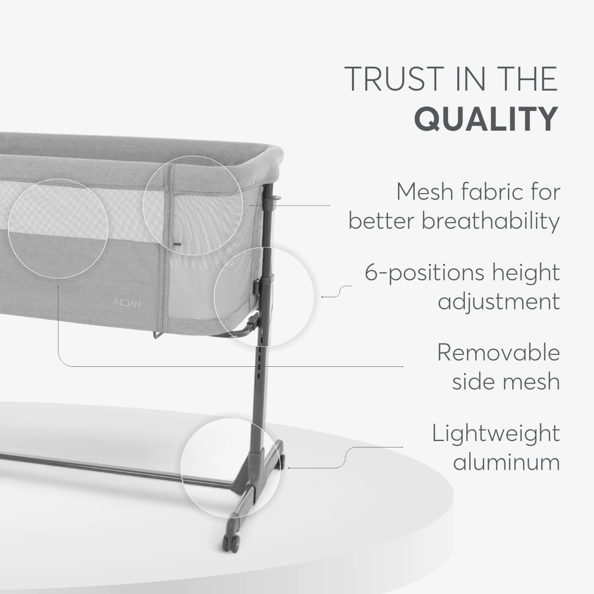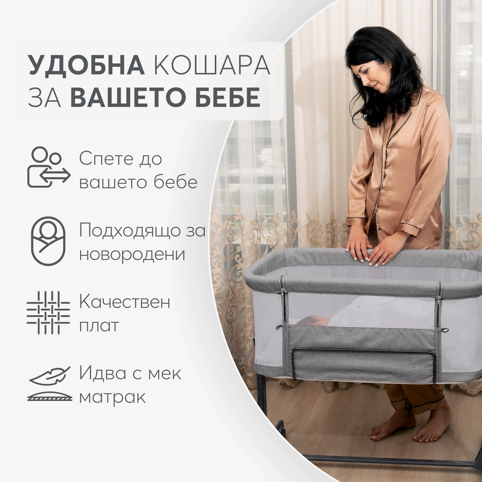تخت کنار مادر کیکابو مدل Noah، قابل استفاده برای نوزادان از بدو تولد تا حدود 6 ماهگی است.ارتفاع این محصول در 6 موقعیت تنظیم شده و به راحتی با تخت والدین هم سطح میشود.این محصول ساخته شده از قاب آلومینیومی مقاوم بوده و به نسبت حجم آن، سبک میباشد. تخت کنار مادر noah دارای ترمز بوده و یک بند اضافی بلند، اتصال را به تخت مادر ایمن تر میسازد؛ از این رو آرامش خاطر برای والدین به همراه دارد.