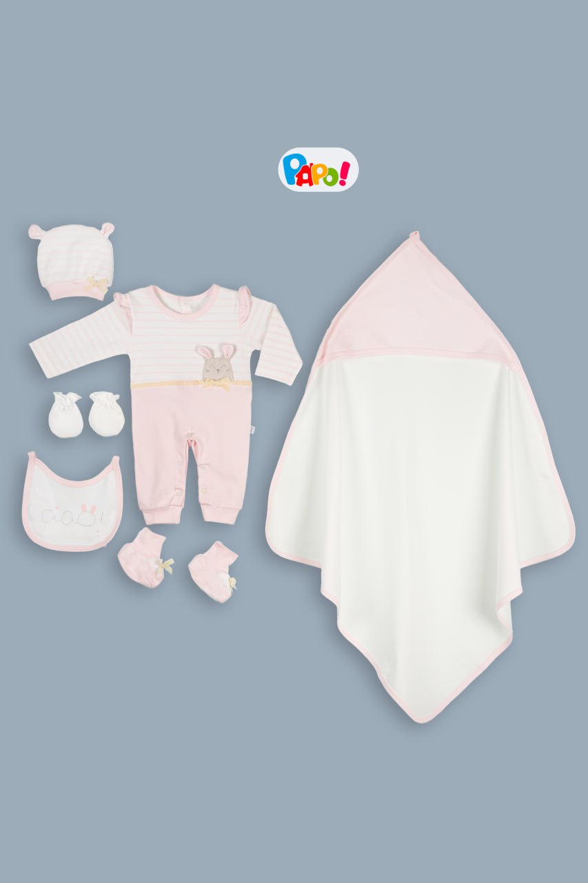 ست بیمارستانی پاپو papo  یک ست هفت تکه بسیار زیبا برای کودکان از بدو تولد تا ۳ ماهگی تولید شده است. این محصول از نخ پنبه خاص و مناسب با پوست حساس نوزدان تولید شده است.