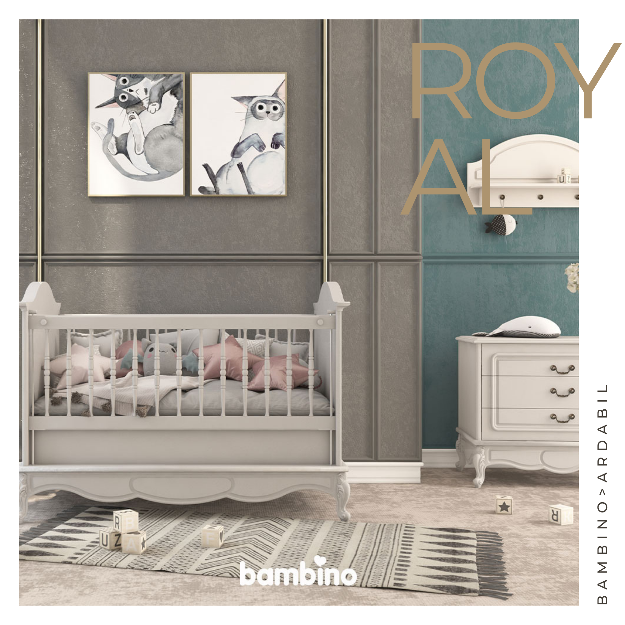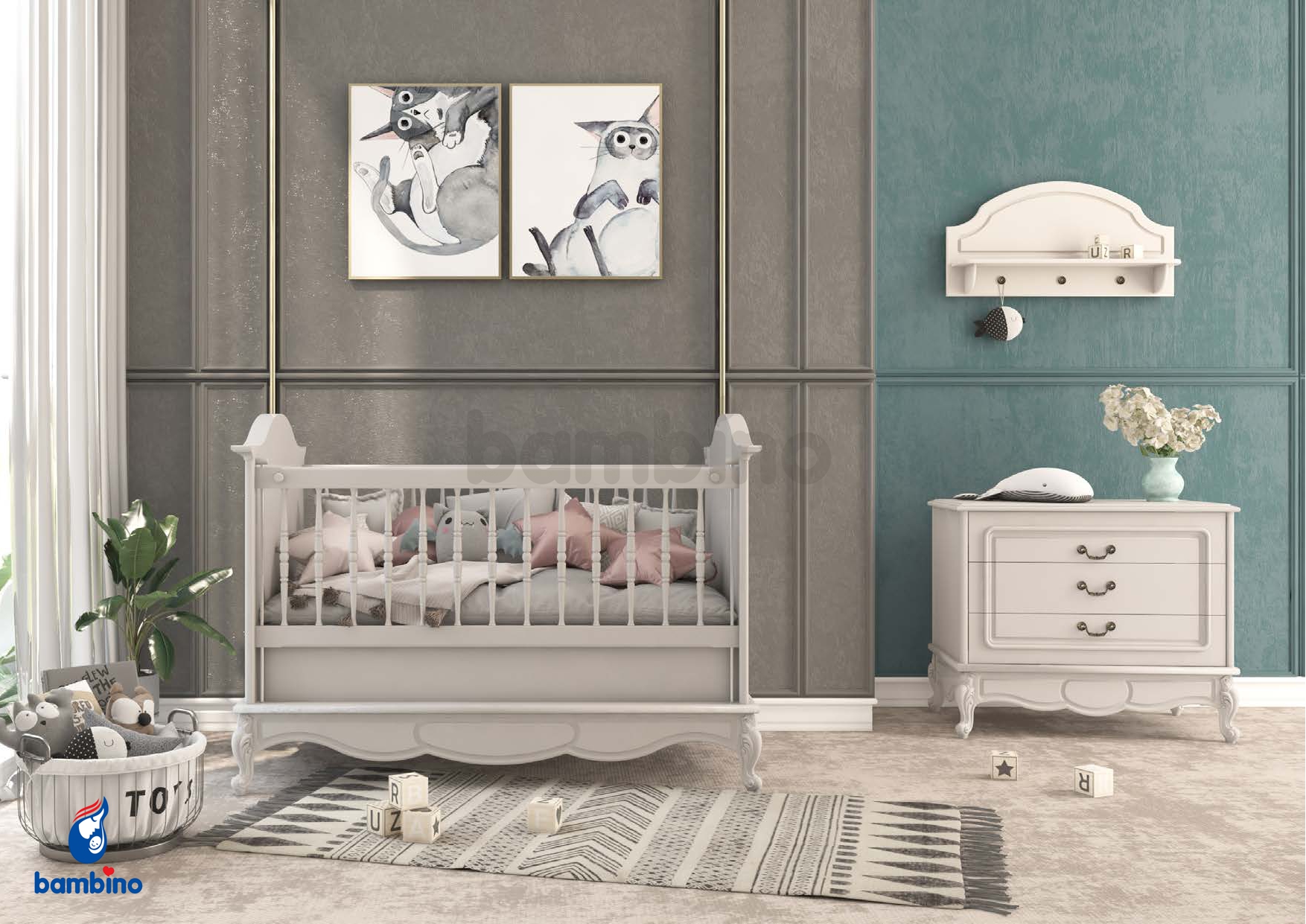 تخت نوزادی و سیسمونی مدل رویال royal (رنگ موشی) بامبینو bambino