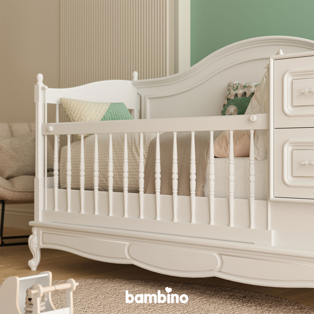 تختخواب نوزاد نوجوان کاناپه سرویس سیسمونی مدل رویال royal (رنگ موشی) بامبینو bambino