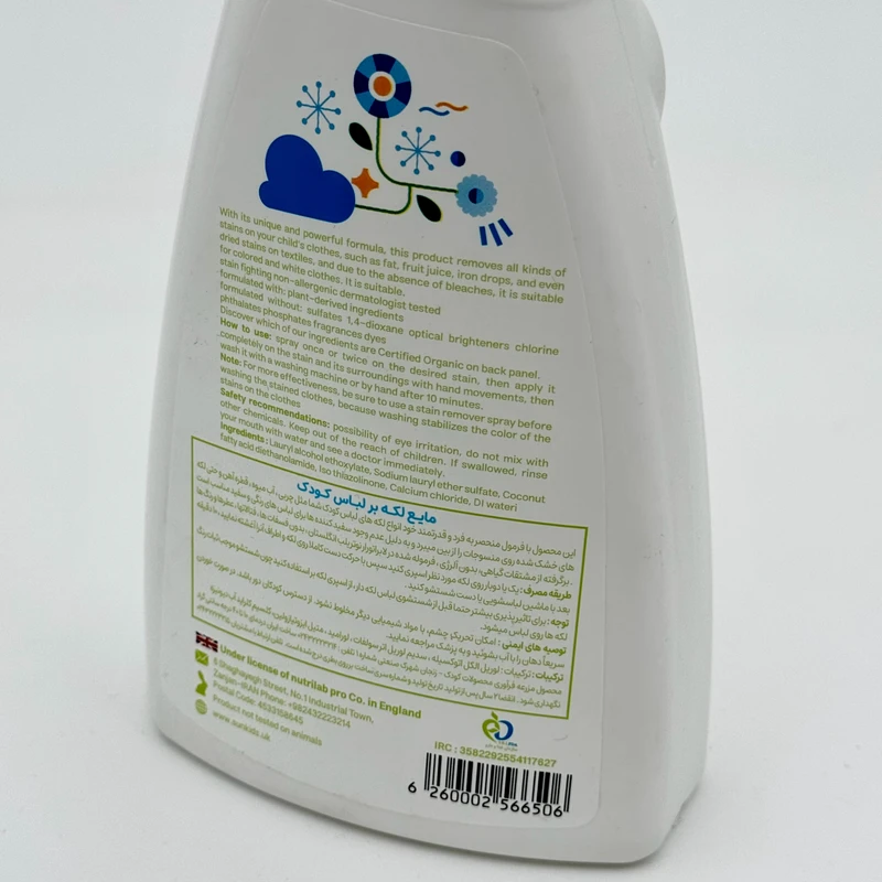 این محصول با فرمول منحصر به فرد قدرتمند خود انواع لکه های لباس کودک شما را برطرف می کند.